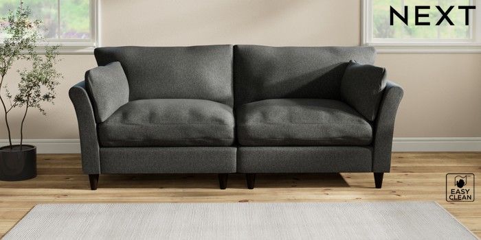 7.2.10 Hartley Relaxed Sit 4 Seater Sofa Tweedy Blend Easy Clean Charcoal Grey Low Conical - Dark | Made Click here to use our website with more accessibility support, for example screen readers