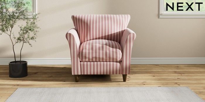 7.2.10 Hartley Relaxed Sit Armchair Bold Chenille Stripe Dark Pink Low Conical - Mid | Made Click here to use our website with more accessibility support, for example screen readers