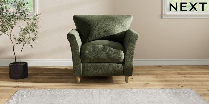 7.2.10 Hartley Relaxed Sit Armchair Boucle Chenille Dark Moss Green Low Conical - Light | Made Click here to use our website with more accessibility support, for example screen readers