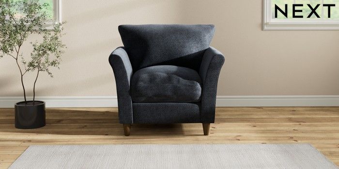 7.2.10 Hartley Relaxed Sit Armchair Boucle Chenille Dark Slate Blue Low Conical - Mid | Made Click here to use our website with more accessibility support, for example screen readers