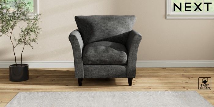 7.2.10 Hartley Relaxed Sit Armchair Boucle Weave Easy Clean Charcoal Grey Low Conical - Dark | Made Click here to use our website with more accessibility support, for example screen readers