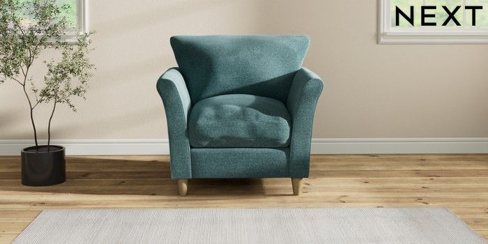 7.2.10 Hartley Relaxed Sit Armchair Chunky Chenille Mid Teal Green Low Conical - Light | Made Click here to use our website with more accessibility support, for example screen readers
