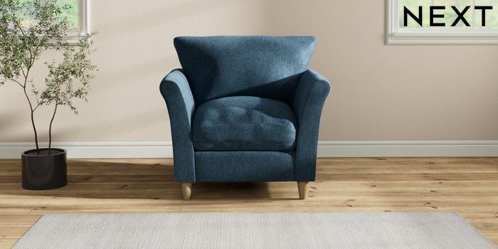 7.2.10 Hartley Relaxed Sit Armchair Cotswold Chenille Dark Blue Low Conical - Light | Made Click here to use our website with more accessibility support, for example screen readers