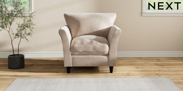 7.2.10 Hartley Relaxed Sit Armchair Cotswold Chenille Light Natural Low Conical - Dark | Made Click here to use our website with more accessibility support, for example screen readers