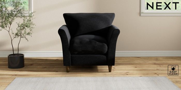 7.2.10 Hartley Relaxed Sit Armchair Fine Chenille Easy Clean Black Low Conical - Mid | Made Click here to use our website with more accessibility support, for example screen readers