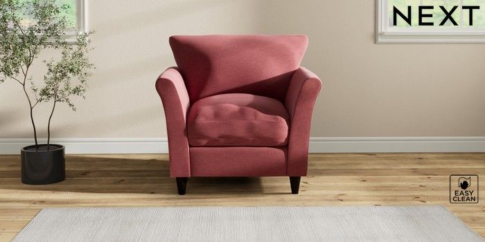 7.2.10 Hartley Relaxed Sit Armchair Fine Chenille Easy Clean Mid Pink Low Conical - Dark | Made Click here to use our website with more accessibility support, for example screen readers