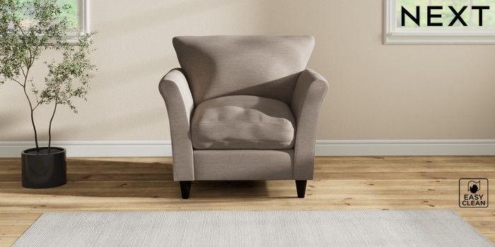 7.2.10 Hartley Relaxed Sit Armchair Fine Chenille Easy Clean Mid Taupe Brown Low Conical - Dark | Made Click here to use our website with more accessibility support, for example screen readers