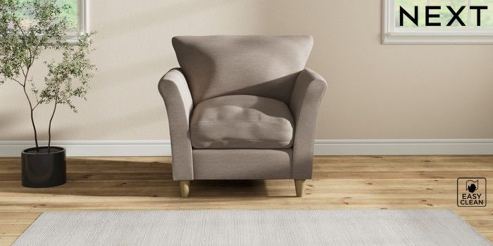 7.2.10 Hartley Relaxed Sit Armchair Fine Chenille Easy Clean Mid Taupe Brown Low Conical - Light | Made Click here to use our website with more accessibility support, for example screen readers