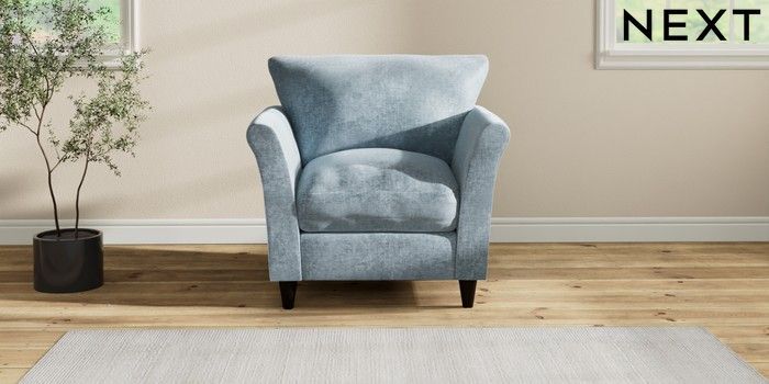 7.2.10 Hartley Relaxed Sit Armchair Plush Chenille Light Blue Low Conical - Dark | Made Click here to use our website with more accessibility support, for example screen readers