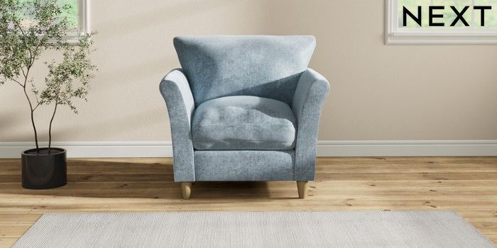 7.2.10 Hartley Relaxed Sit Armchair Plush Chenille Light Blue Low Conical - Light | Made Click here to use our website with more accessibility support, for example screen readers