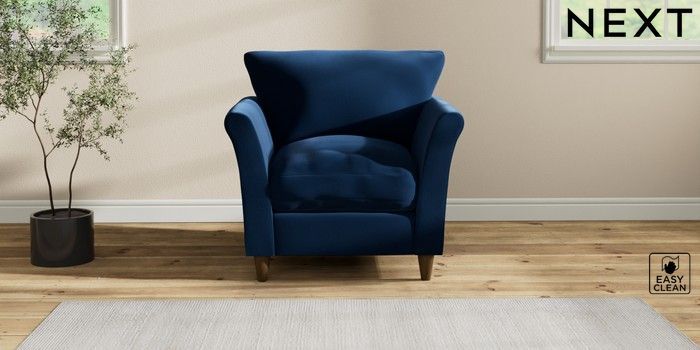 7.2.10 Hartley Relaxed Sit Armchair Plush Velvet Easy Clean Navy Blue Low Conical - Mid | Made Click here to use our website with more accessibility support, for example screen readers