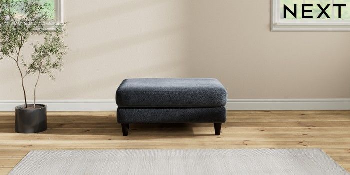 7.2.10 Hartley Relaxed Sit Footstool Boucle Chenille Dark Slate Blue Low Conical - Dark | Made Click here to use our website with more accessibility support, for example screen readers
