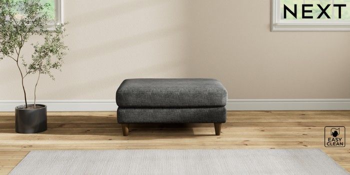 7.2.10 Hartley Relaxed Sit Footstool Boucle Weave Easy Clean Charcoal Grey Low Conical - Mid | Made Click here to use our website with more accessibility support, for example screen readers