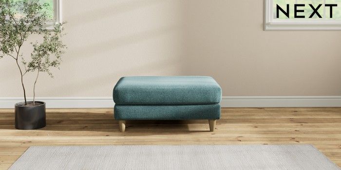 7.2.10 Hartley Relaxed Sit Footstool Chunky Chenille Mid Teal Green Low Conical - Light | Made Click here to use our website with more accessibility support, for example screen readers