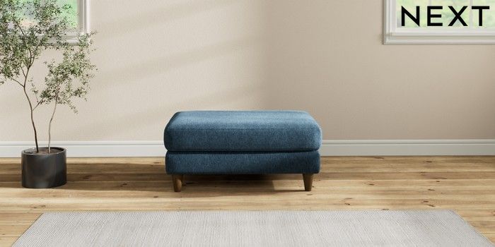 7.2.10 Hartley Relaxed Sit Footstool Cotswold Chenille Dark Blue Low Conical - Mid | Made Click here to use our website with more accessibility support, for example screen readers