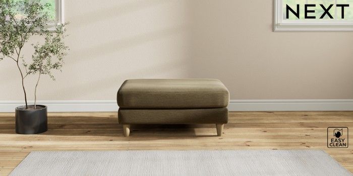 7.2.10 Hartley Relaxed Sit Footstool Fine Chenille Easy Clean Dark Moss Green Low Conical - Light | Made Click here to use our website with more accessibility support, for example screen readers