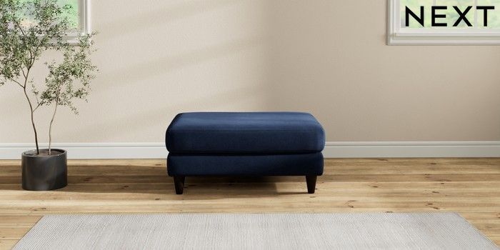 7.2.10 Hartley Relaxed Sit Footstool Luxe Chenille Navy Blue Low Conical - Dark | Made Click here to use our website with more accessibility support, for example screen readers