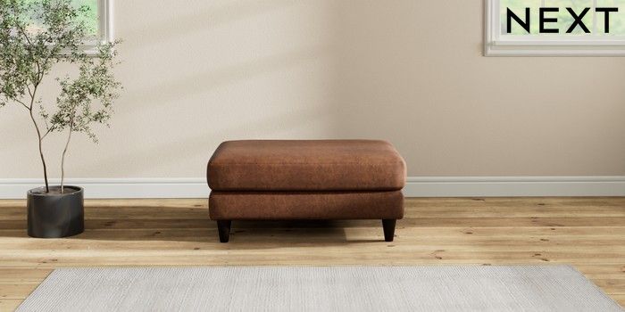 7.2.10 Hartley Relaxed Sit Footstool Monza Faux Leather Easy Clean Chestnut Brown Low Conical - Dark | Made Click here to use our website with more accessibility support, for example screen readers