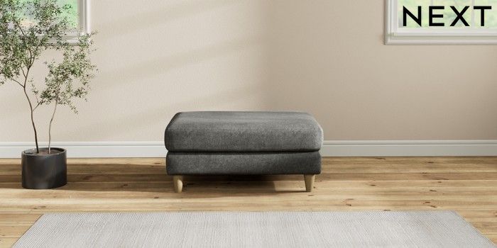 7.2.10 Hartley Relaxed Sit Footstool Plush Chenille Dark Grey Low Conical - Light | Made Click here to use our website with more accessibility support, for example screen readers