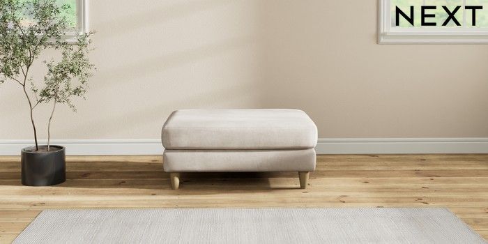 7.2.10 Hartley Relaxed Sit Footstool Plush Chenille Oyster Low Conical - Light | Made Click here to use our website with more accessibility support, for example screen readers
