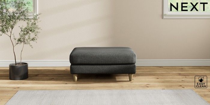 7.2.10 Hartley Relaxed Sit Footstool Tweedy Blend Easy Clean Charcoal Grey Low Conical - Light | Made Click here to use our website with more accessibility support, for example screen readers
