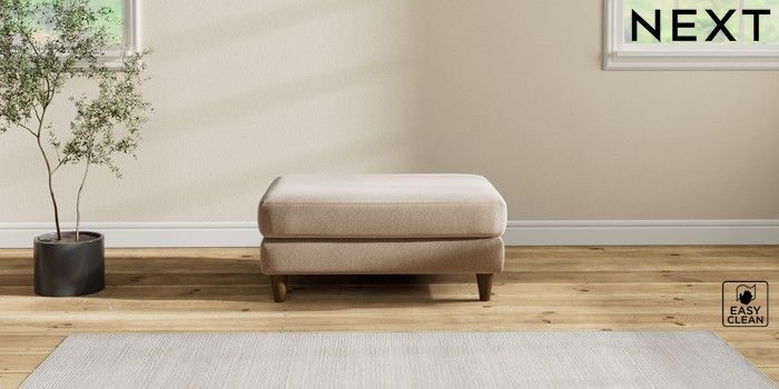 7.2.10 Hartley Relaxed Sit Footstool Tweedy Blend Easy Clean Light Dove Natural Low Conical - Mid | Made Click here to use our website with more accessibility support, for example screen readers