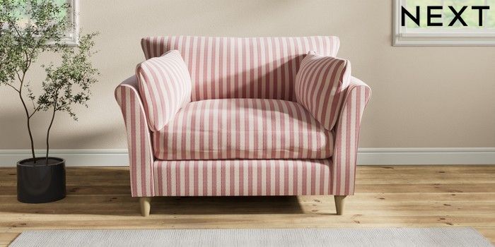 7.2.10 Hartley Relaxed Sit Love Seat Bold Chenille Stripe Dark Pink Low Conical - Light | Made Click here to use our website with more accessibility support, for example screen readers