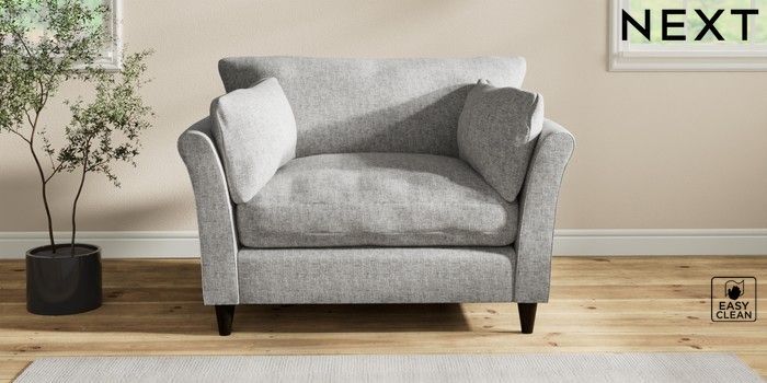 7.2.10 Hartley Relaxed Sit Love Seat Chunky Boucle Easy Clean Light Grey Low Conical - Dark | Made Click here to use our website with more accessibility support, for example screen readers