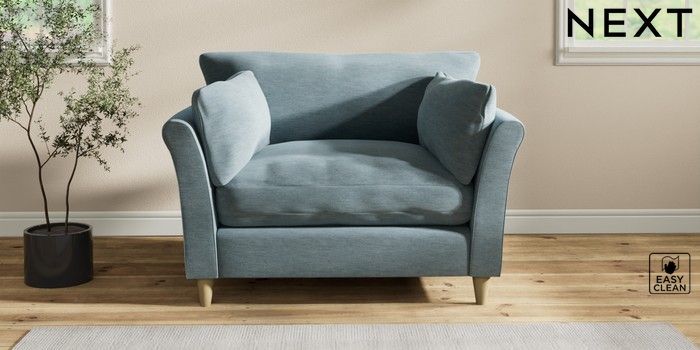 7.2.10 Hartley Relaxed Sit Love Seat Fine Chenille Easy Clean Mid Blue Low Conical - Light | Made Click here to use our website with more accessibility support, for example screen readers