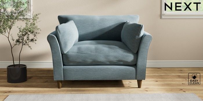 7.2.10 Hartley Relaxed Sit Love Seat Fine Chenille Easy Clean Mid Blue Low Conical - Mid | Made Click here to use our website with more accessibility support, for example screen readers