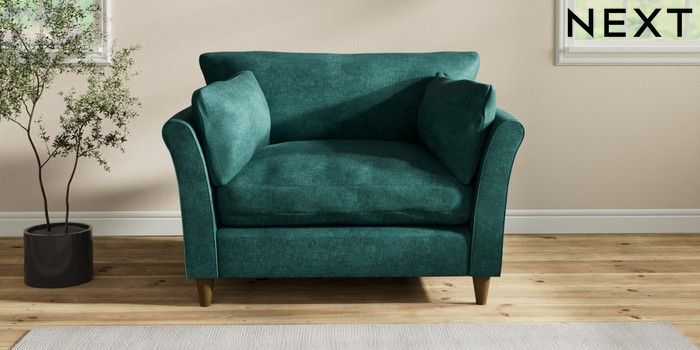 7.2.10 Hartley Relaxed Sit Love Seat Plush Chenille Dark Teal Green Low Conical - Mid | Made Click here to use our website with more accessibility support, for example screen readers