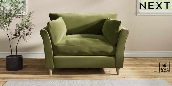 7.2.10 Hartley Relaxed Sit Love Seat Plush Velvet Easy Clean Mid Olive Green Low Conical - Light | Made Click here to use our website with more accessibility support, for example screen readers