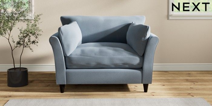 7.2.10 Hartley Relaxed Sit Love Seat Relaxed Linen Look Mid Blue Low Conical - Dark | Made Click here to use our website with more accessibility support, for example screen readers