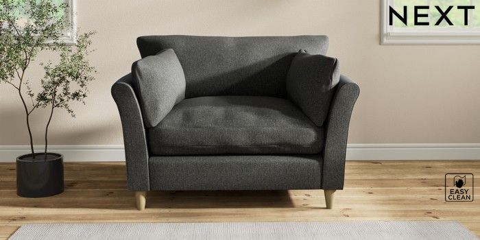 7.2.10 Hartley Relaxed Sit Love Seat Tweedy Blend Easy Clean Charcoal Grey Low Conical - Light | Made Click here to use our website with more accessibility support, for example screen readers