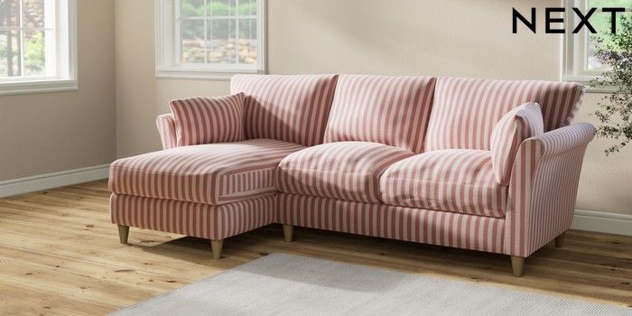 7.2.10 Hartley Relaxed Sit Medium Sofa Chaise - Left Hand Bold Chenille Stripe Dark Pink Low Conical - Light | Made Click here to use our website with more accessibility support, for example screen readers