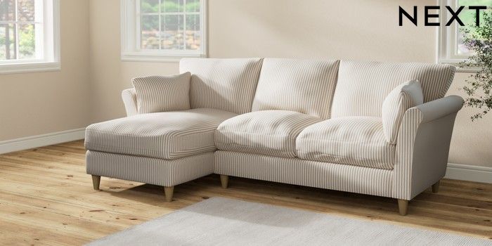 7.2.10 Hartley Relaxed Sit Medium Sofa Chaise - Left Hand Chenille Stripe Natural Low Conical - Light | Made Click here to use our website with more accessibility support, for example screen readers