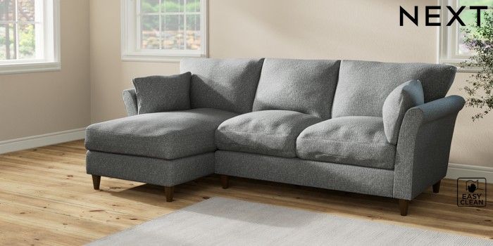 7.2.10 Hartley Relaxed Sit Medium Sofa Chaise - Left Hand Chunky Boucle Easy Clean Mid Grey Low Conical - Mid | Made Click here to use our website with more accessibility support, for example screen readers