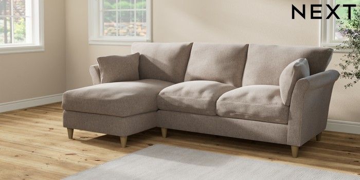 7.2.10 Hartley Relaxed Sit Medium Sofa Chaise - Left Hand Chunky Chenille Light Dove Low Conical - Light | Made Click here to use our website with more accessibility support, for example screen readers