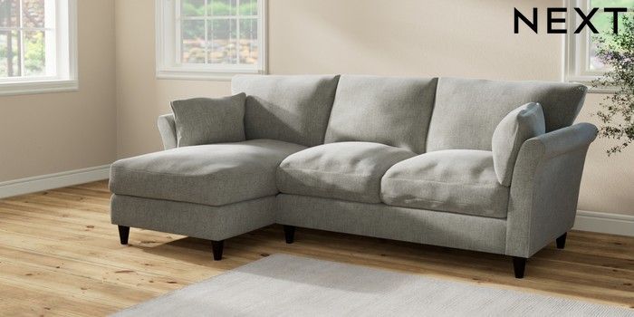 7.2.10 Hartley Relaxed Sit Medium Sofa Chaise - Left Hand Chunky Chenille Light Grey Low Conical - Dark | Made Click here to use our website with more accessibility support, for example screen readers