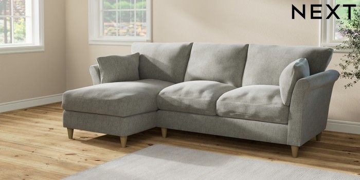 7.2.10 Hartley Relaxed Sit Medium Sofa Chaise - Left Hand Chunky Chenille Light Grey Low Conical - Light | Made Click here to use our website with more accessibility support, for example screen readers