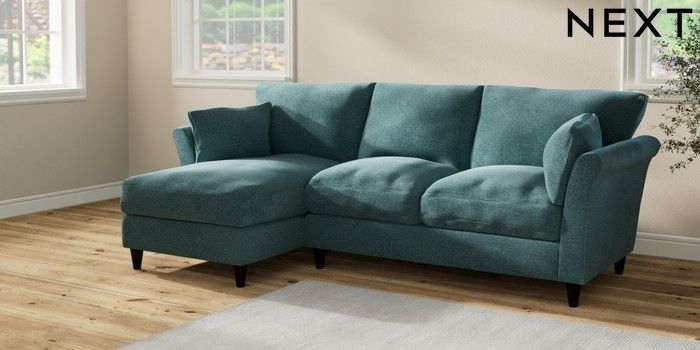 7.2.10 Hartley Relaxed Sit Medium Sofa Chaise - Left Hand Chunky Chenille Mid Teal Green Low Conical - Dark | Made Click here to use our website with more accessibility support, for example screen readers