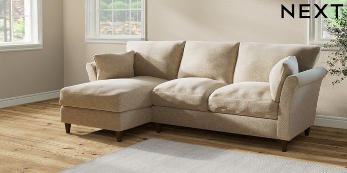 7.2.10 Hartley Relaxed Sit Medium Sofa Chaise - Left Hand Chunky Weave Cream Low Conical - Mid | Made Click here to use our website with more accessibility support, for example screen readers