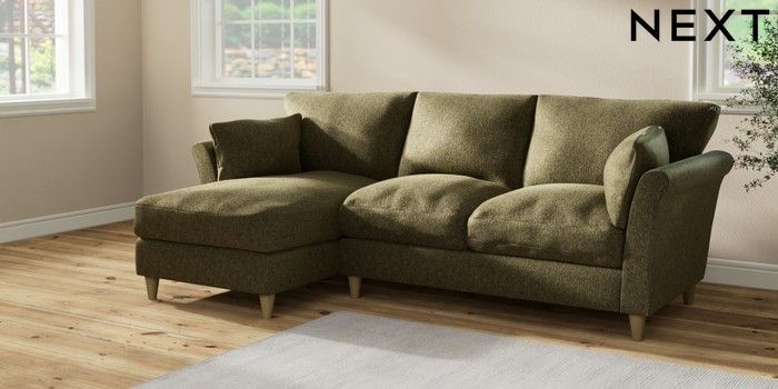 7.2.10 Hartley Relaxed Sit Medium Sofa Chaise - Left Hand Cotswold Chenille Dark Green Low Conical - Light | Made Click here to use our website with more accessibility support, for example screen readers