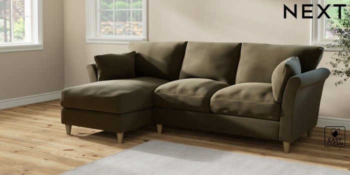7.2.10 Hartley Relaxed Sit Medium Sofa Chaise - Left Hand Fine Chenille Easy Clean Dark Moss Green Low Conical - Light | Made Click here to use our website with more accessibility support, for example screen readers