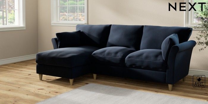 7.2.10 Hartley Relaxed Sit Medium Sofa Chaise - Left Hand Fine Chenille Easy Clean Dark Navy Blue Low Conical - Light | Made Click here to use our website with more accessibility support, for example screen readers