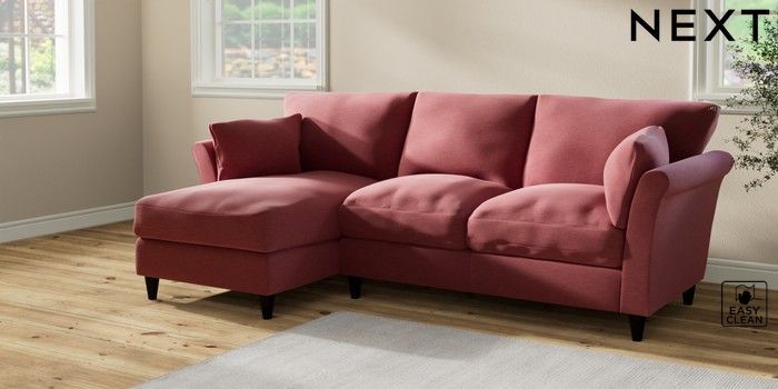7.2.10 Hartley Relaxed Sit Medium Sofa Chaise - Left Hand Fine Chenille Easy Clean Mid Pink Low Conical - Dark | Made Click here to use our website with more accessibility support, for example screen readers
