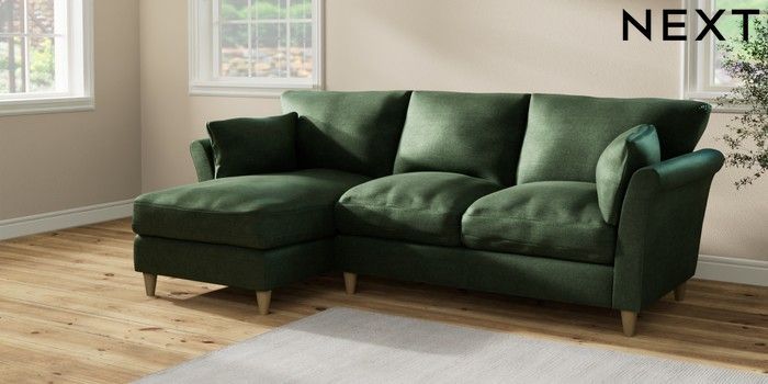 7.2.10 Hartley Relaxed Sit Medium Sofa Chaise - Left Hand Luxe Chenille Dark Green Low Conical - Light | Made Click here to use our website with more accessibility support, for example screen readers