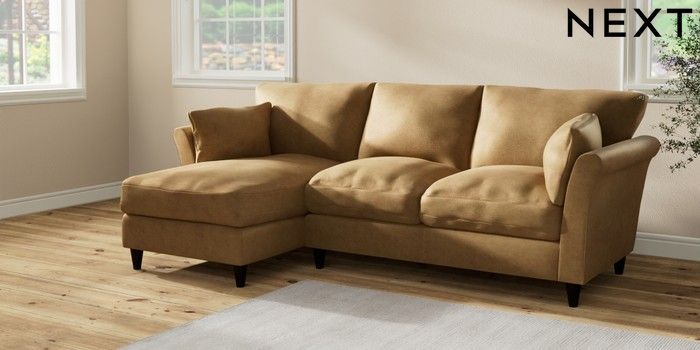 7.2.10 Hartley Relaxed Sit Medium Sofa Chaise - Left Hand Luxe Chenille Honey Yellow Low Conical - Dark | Made Click here to use our website with more accessibility support, for example screen readers