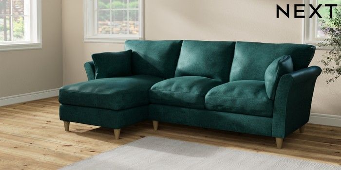 7.2.10 Hartley Relaxed Sit Medium Sofa Chaise - Left Hand Plush Chenille Dark Teal Green Low Conical - Light | Made Click here to use our website with more accessibility support, for example screen readers