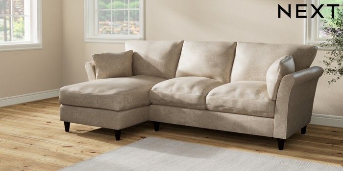 7.2.10 Hartley Relaxed Sit Medium Sofa Chaise - Left Hand Plush Chenille Light Natural Low Conical - Dark | Made Click here to use our website with more accessibility support, for example screen readers